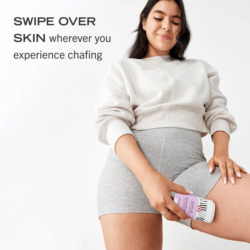 สติ๊กกันการเสียดสีจาก FIRST AID BEAUTY ช่วยปกป้องผิวบริเวณที่เสียดสีกัน เช่น ขา ต้นขา ใต้วงแขน หรือบริเวณรอยพับผิว ให้ผิวลื่นและลดการระคายเคืองระหว่างวัน