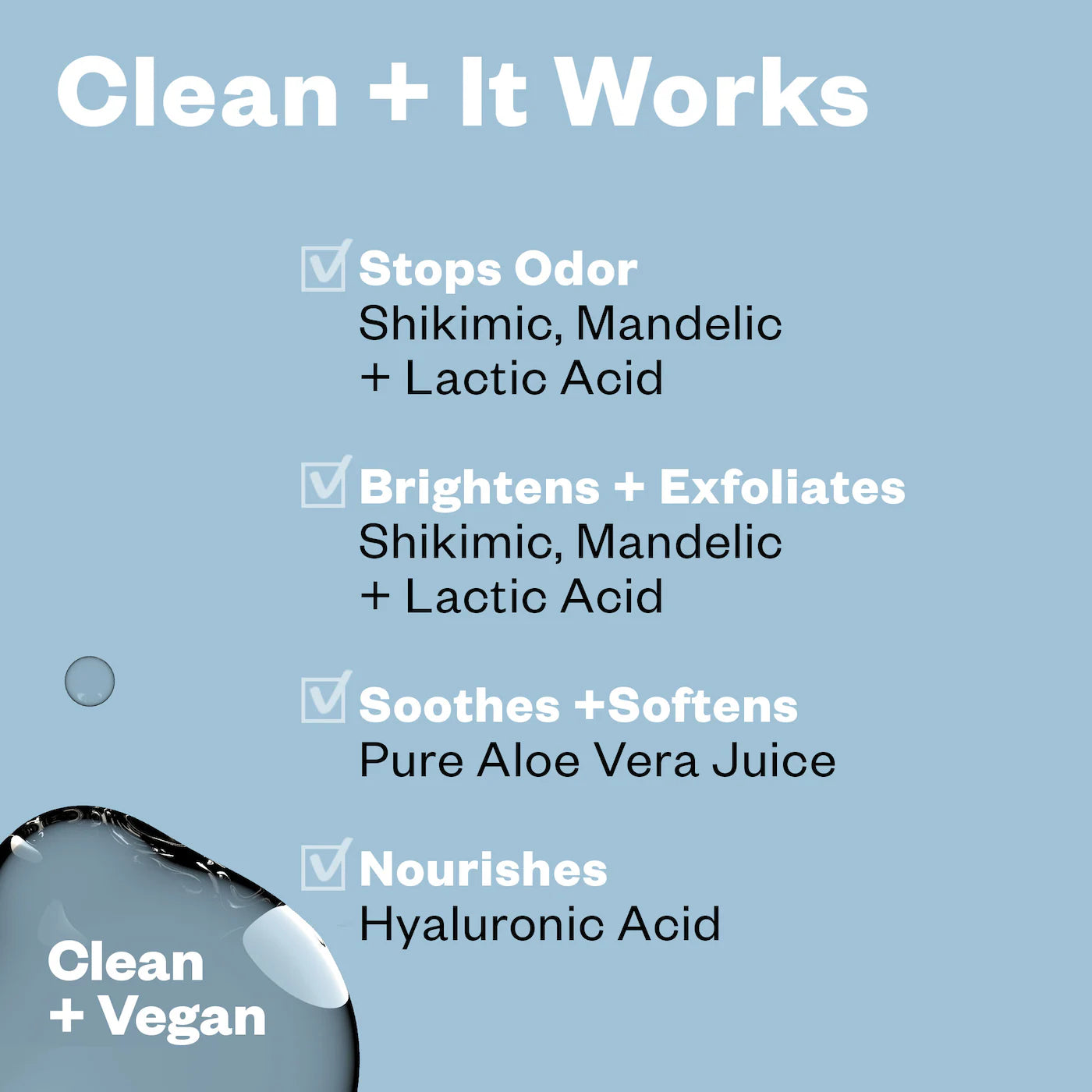 ใช้กรดผลไม้ AHA ในการควบคุมกลิ่น โดยปรับสมดุลค่า pH ใต้วงแขนให้ไม่เอื้อต่อการเจริญของแบคทีเรีย