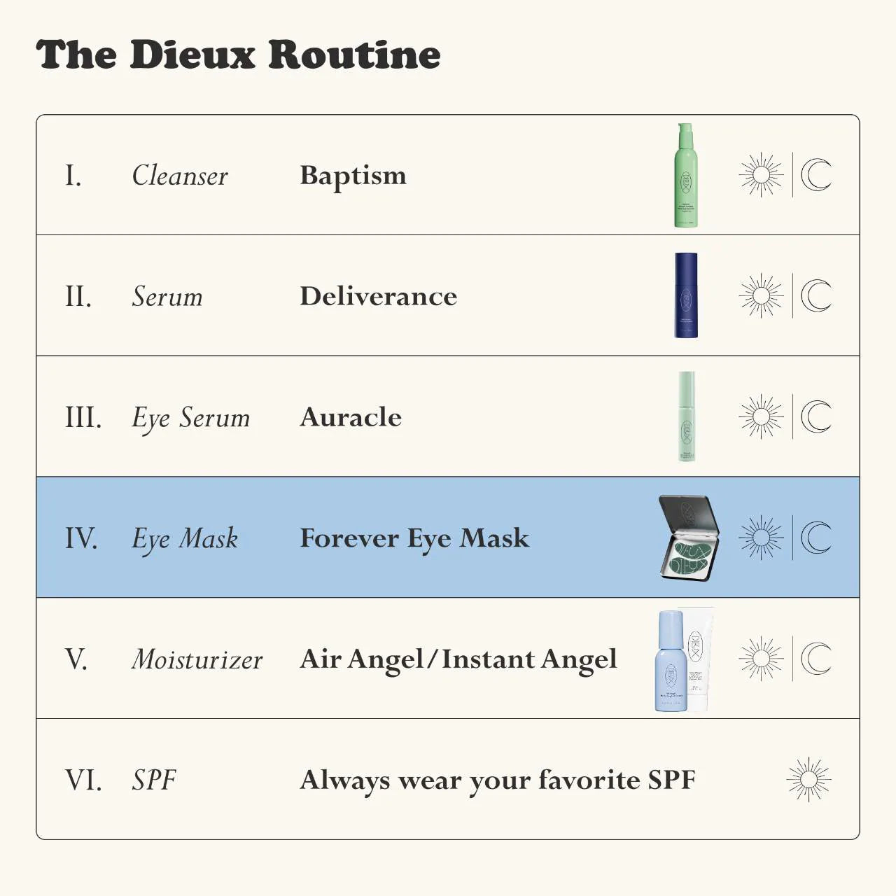 หน้ากากตาแบบซิลิโคนซ้ำได้ (Reusable Silicone Eye Mask) จากแบรนด์ DIEUX Skin ที่สร้างขึ้นเพื่อใช้คู่กับเซรั่ม เจล หรือครีมรอบดวงตา โดยช่วยล็อกผลิตภัณฑ์ไว้ใกล้ผิว ทำให้ซึมซาบได้ดียิ่งขึ้นและใช้งานได้หลายครั้งมากกว่าแผ่นมาสก์แบบใช้แล้วทิ้ง
