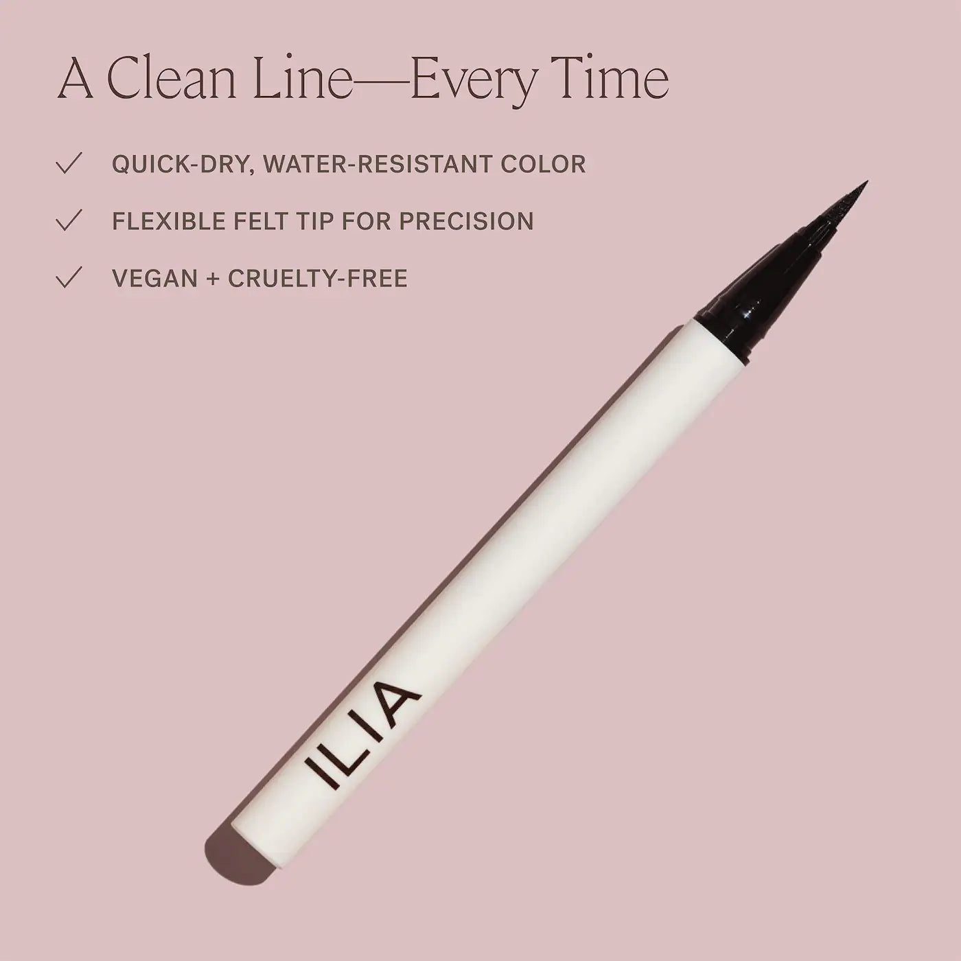 อายไลเนอร์สูตรสะอาดจากแบรนด์ ILIA Beauty ที่ให้เส้นคมชัด สีดำสนิท และติดทนนานตลอดวัน มาพร้อมหัวพู่กันปลายเรียวควบคุมง่าย เหมาะสำหรับทั้งมือใหม่และมือโปร ไม่ว่าจะสร้างเส้นบางแนบขอบตาหรือกรีดตาแบบคมเฉียบก็ทำได้อย่างแม่นยำในครั้งเดียว