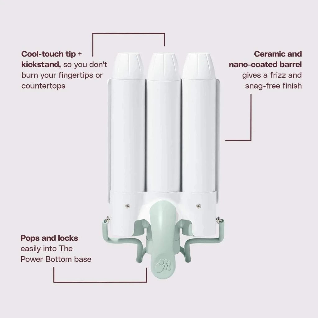Triple Barrel Design (สามแท่งม้วน) ช่วยให้สร้างลอนได้รวดเร็วและสม่ำเสมอทั่วศีรษะ
