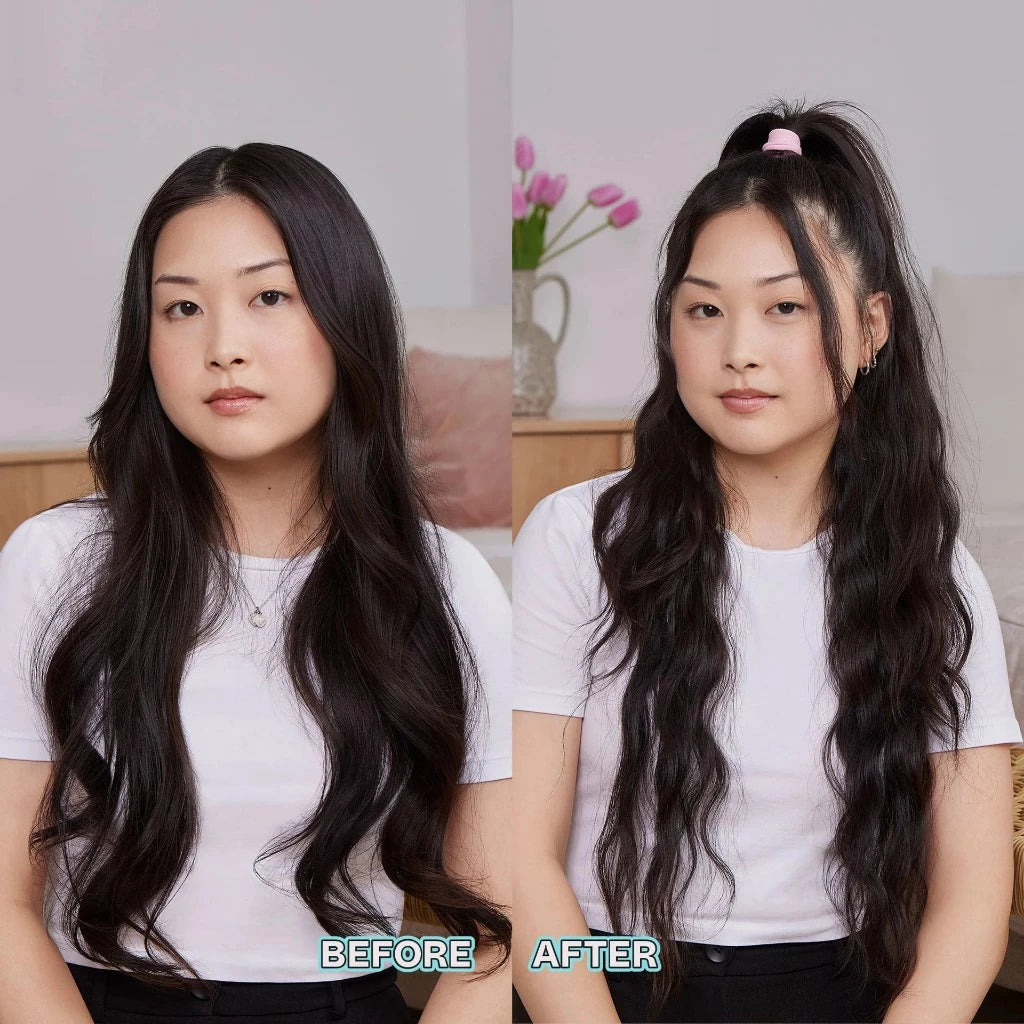 วาง Jumbo Waver ที่โคนผม หนีบค้างไว้ 2–5 วินาที แล้วเลื่อนลงทีละจังหวะจนถึงปลาย