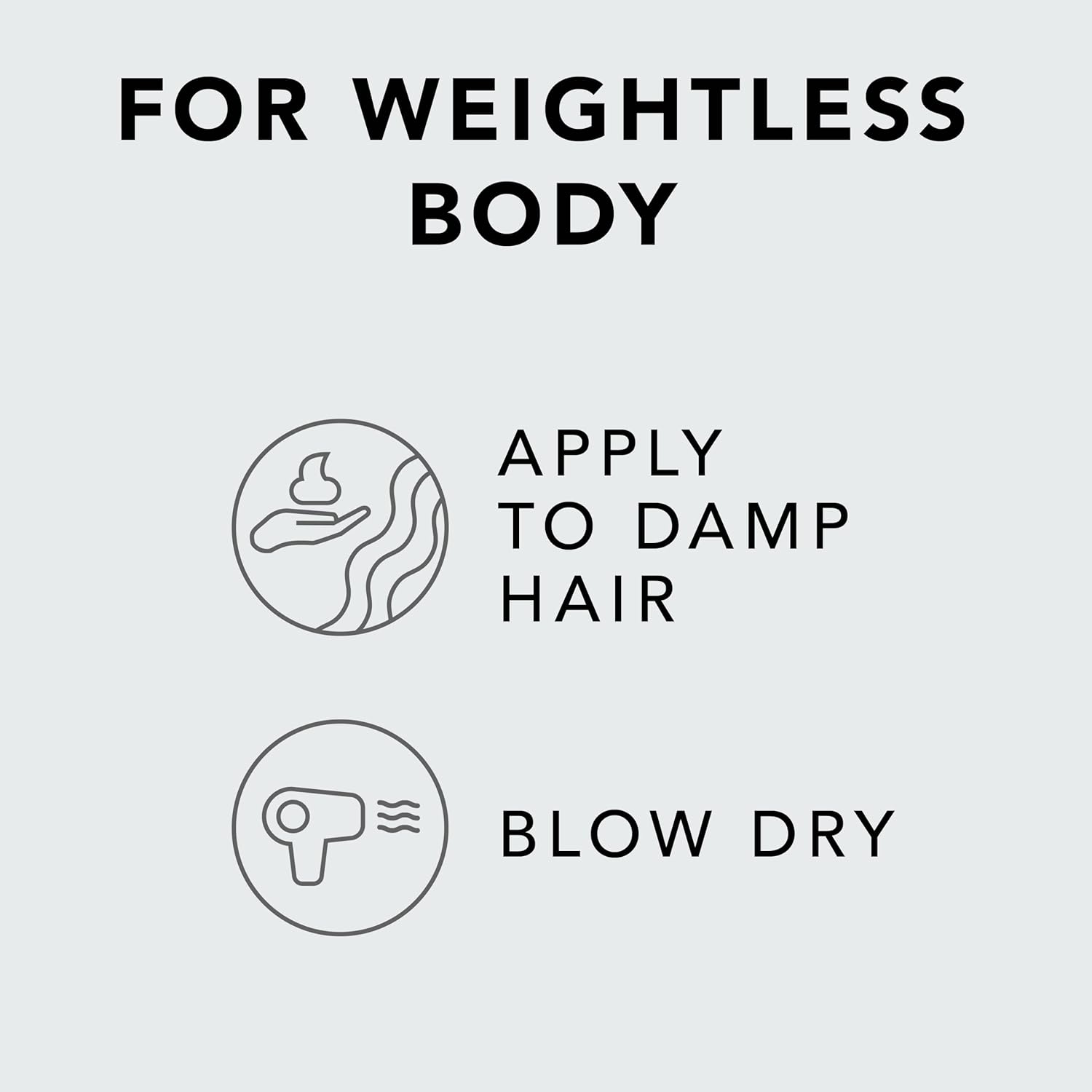 เนื้อสัมผัสของมูสจะเปลี่ยนจากของเหลวเป็นโฟมเบาๆ เมื่อสัมผัสกับอากาศ ช่วยเพิ่มความหนาแน่นและแรงยกโคนผมทันที เส้นผมดูมีน้ำหนัก ยกตัวสวยอยู่ทรงตลอดวัน พร้อมปกป้องผมจากความร้อนระหว่างการไดร์หรือหนีบ
