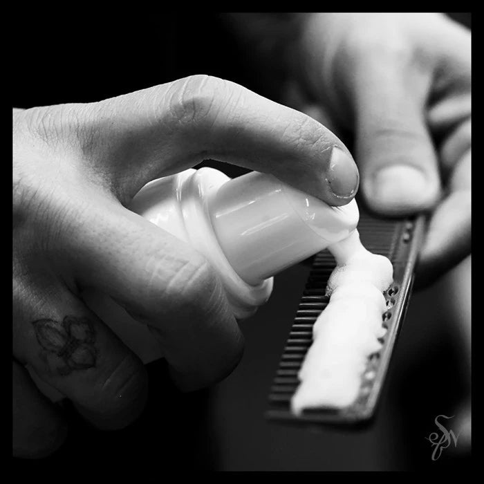 ชโลมลงบนผมหมาดให้ทั่ว โดยเน้นบริเวณโคนผมเพื่อเพิ่มวอลลุ่ม