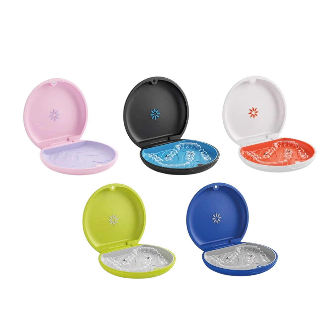 คือเคสเก็บอุปกรณ์จัดฟันใส เช่น Aligner และ Vivera™ Retainer จากแบรนด์ Invisalign ที่ออกแบบมาให้ทั้ง ปลอดภัย ทนทาน และพกพาสะดวก ช่วยป้องกันอุปกรณ์จากสิ่งสกปรก การตกหล่น หรือการเสียรูปทรงเมื่อไม่ได้ใช้งาน เคสรุ่นนี้ถือเป็นอุปกรณ์เสริมมาตรฐานที่ผู้ใช้ Invisalign ทุกคนควรมี