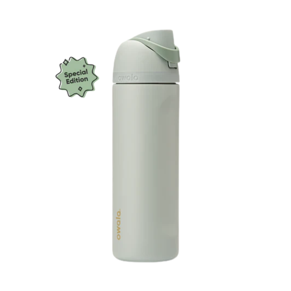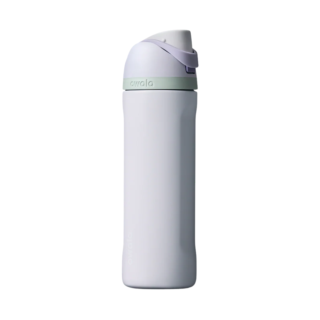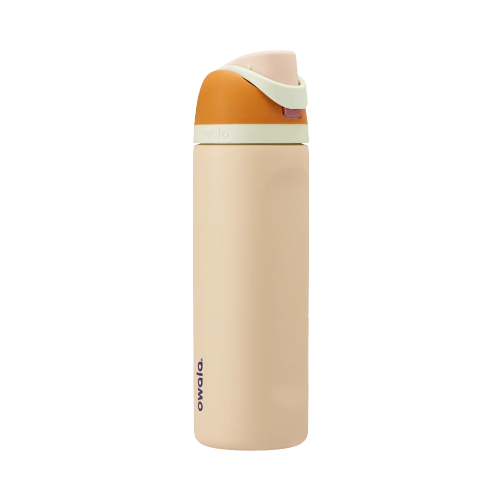 Patented FreeSip spout with a built- in straw that lets you sip or swig