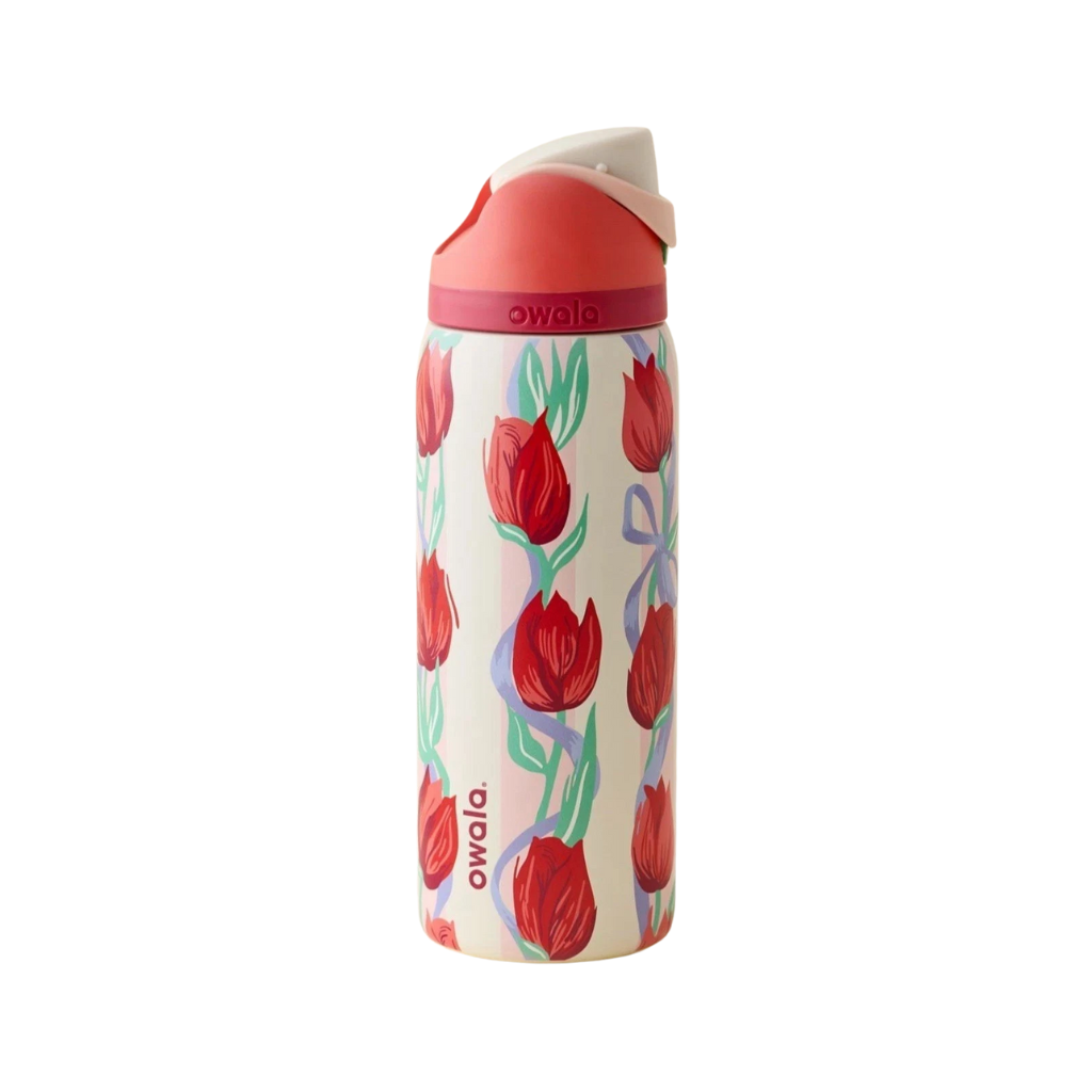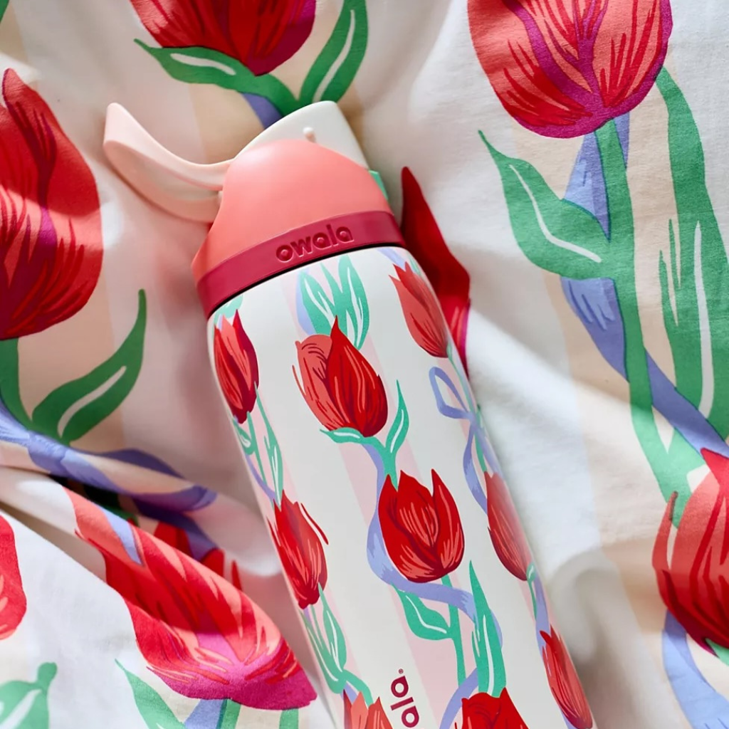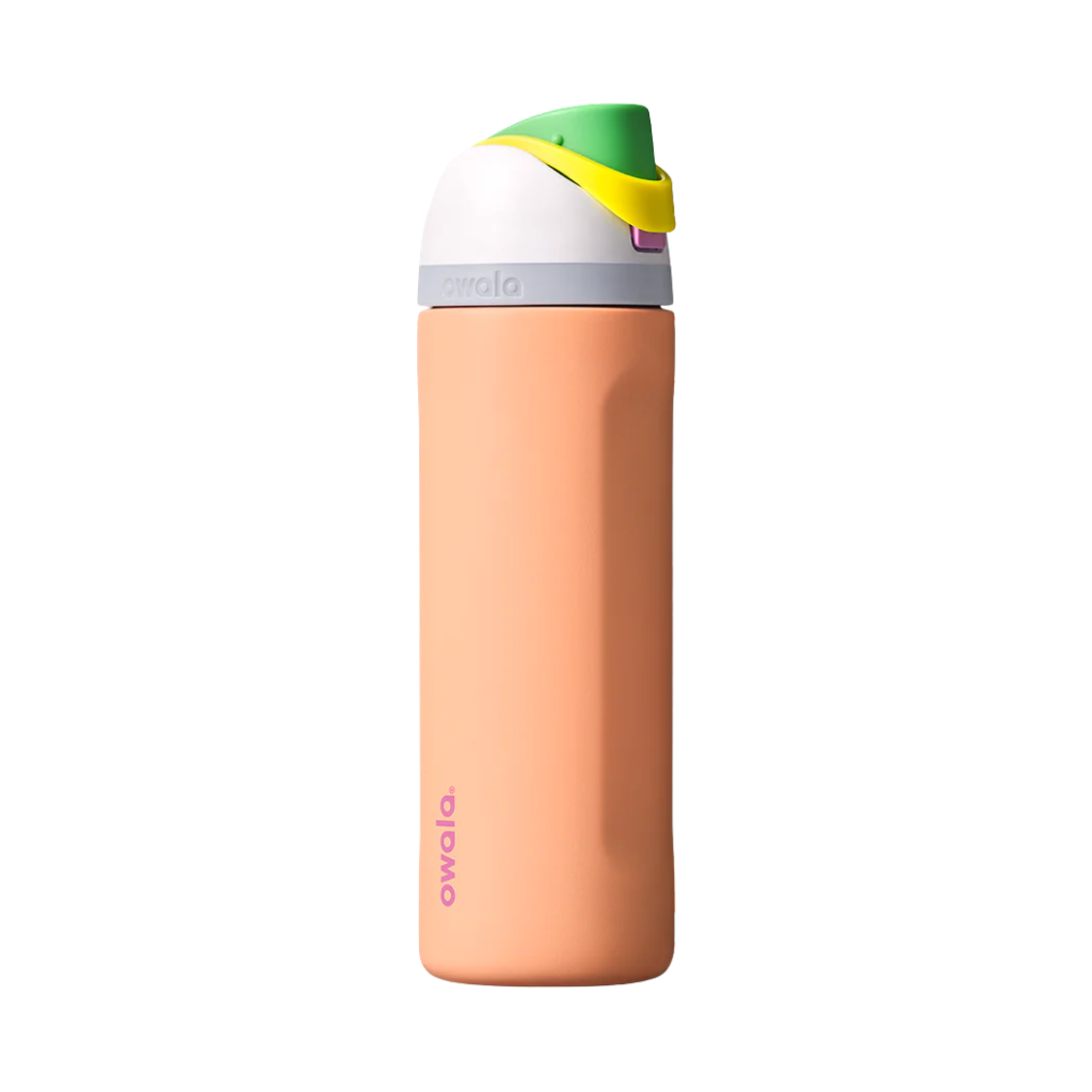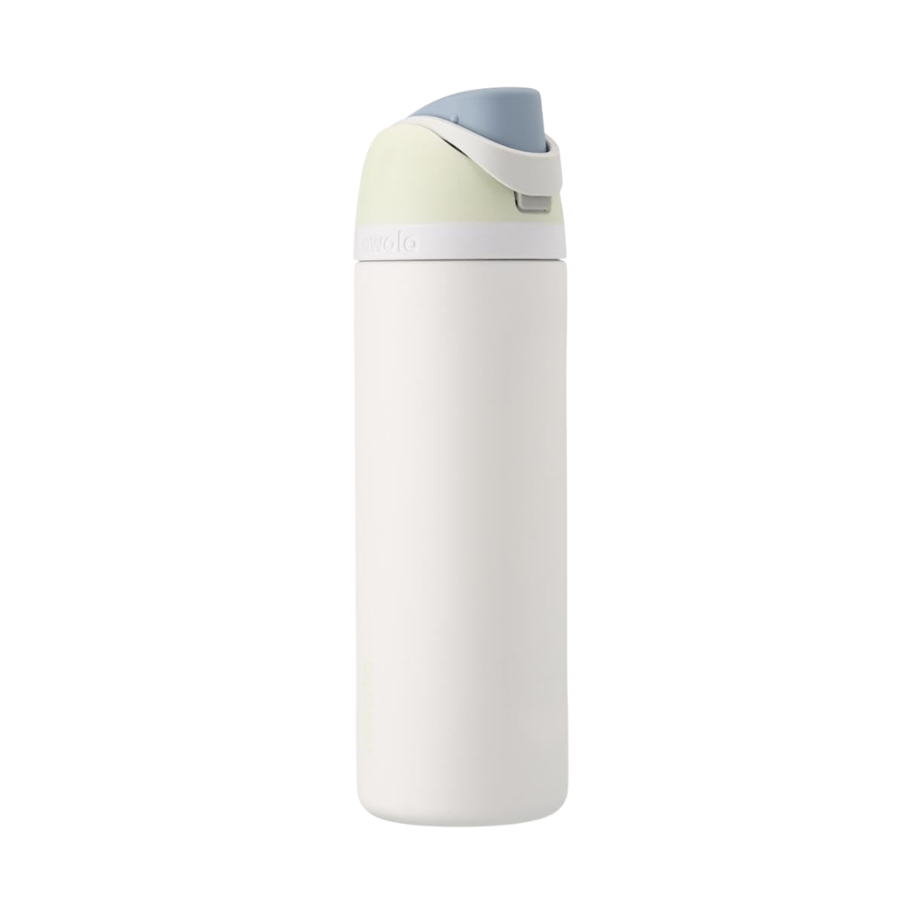 Patented FreeSip spout with a built- in straw that lets you sip or swig