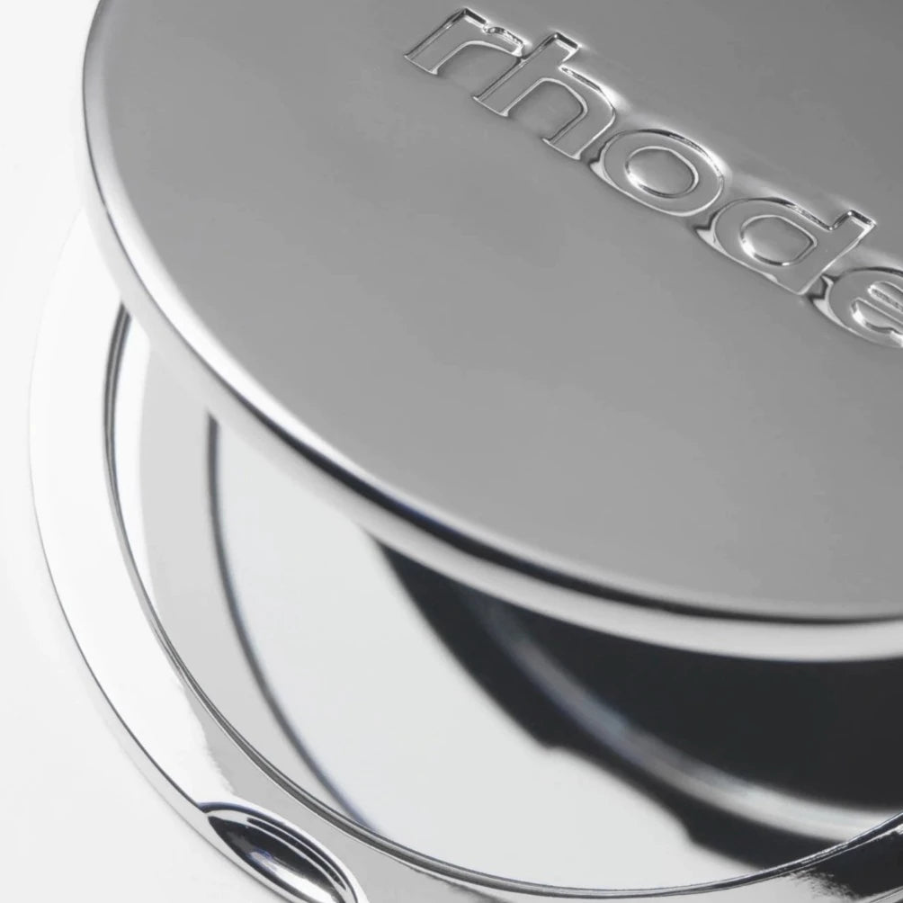 กระจกดีไซน์มินิมอลจากแบรนด์ Rhode by Hailey Bieber ที่ออกแบบมาให้สอดคล้องกับเอกลักษณ์ความเรียบหรูและโทน “glazed aesthetic” ของแบรนด์ Rhode เหมาะสำหรับการพกพาไปทุกที่ — ตั้งแต่โต๊ะเครื่องแป้งไปจนถึงกระเป๋าเครื่องสำอางในทุกวัน