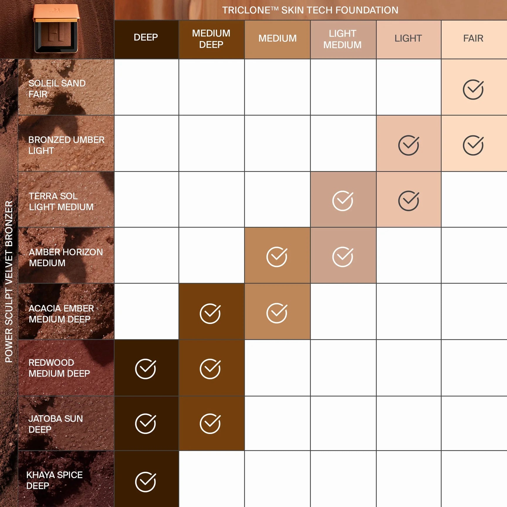 บรอนเซอร์เนื้อแมตต์แบบกำมะหยี่ ที่ช่วยเพิ่มมิติให้ใบหน้าอย่างเป็นธรรมชาติ เนื้อเนียนละเอียด เบลนด์ง่าย ไม่เป็นคราบ พิกเมนต์แน่นแต่ควบคุมได้ดี ให้ลุคผิวบ่มแดดที่ดูสุขภาพดี ติดทนนานทั้งวัน