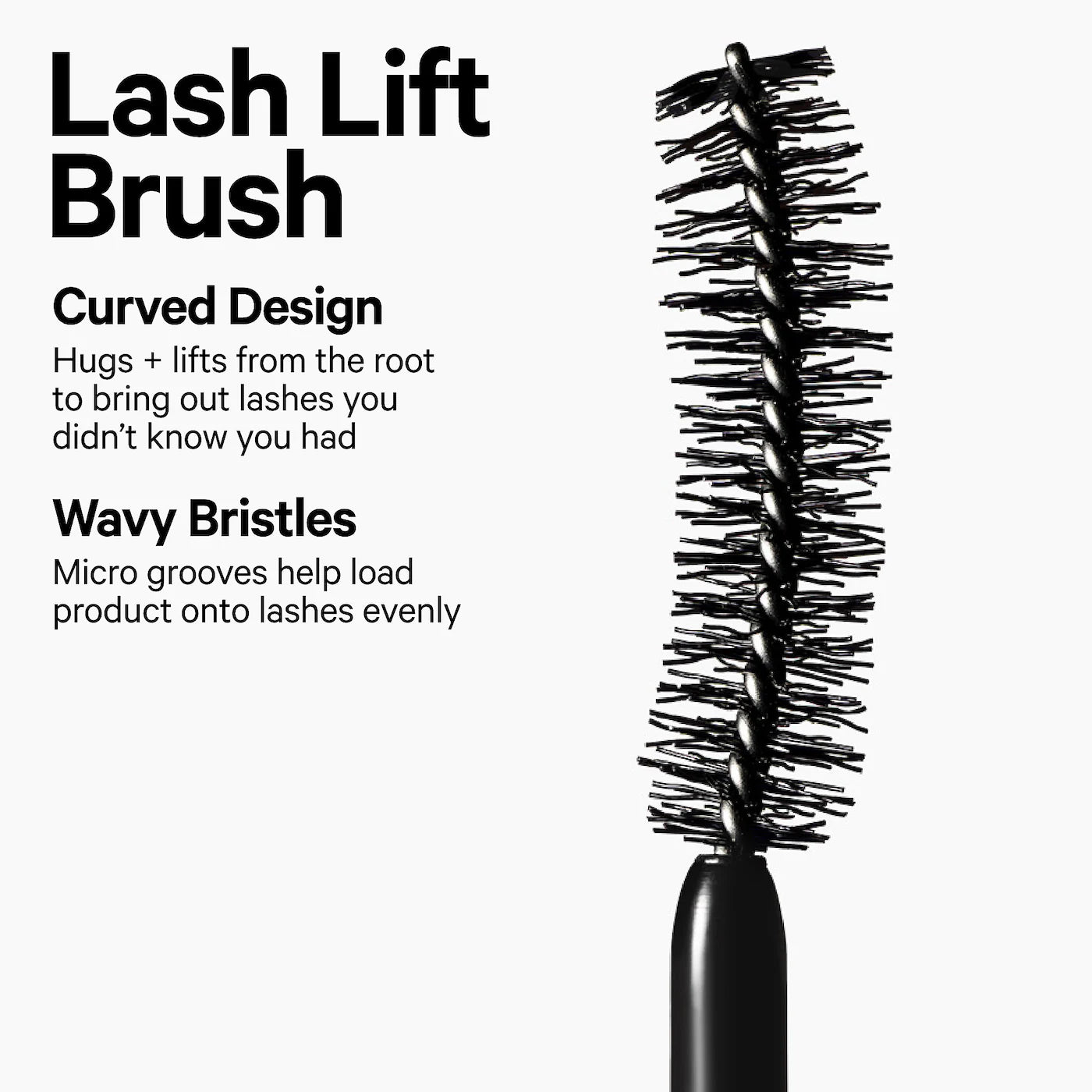แปรงมาสคาร่าแบบโค้ง (curved brush) ที่ช่วยจับทุกรายละเอียดของขนตา ตั้งแต่โคนจนถึงปลาย เพื่อให้ดูยาวและยกขึ้น
