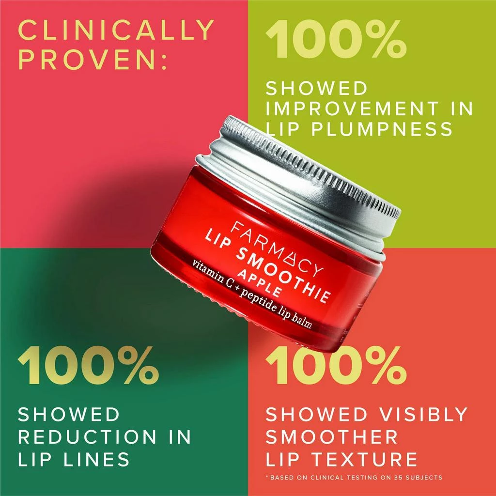 A peptide-powered smoothie for your lips! This nourishing, clinically-proven daily peptide lip balm is packed with peptides, vitamin C + upcycled apple to instantly plump, smooth lip lines + lock in moisture—all with a high-gloss finish.
